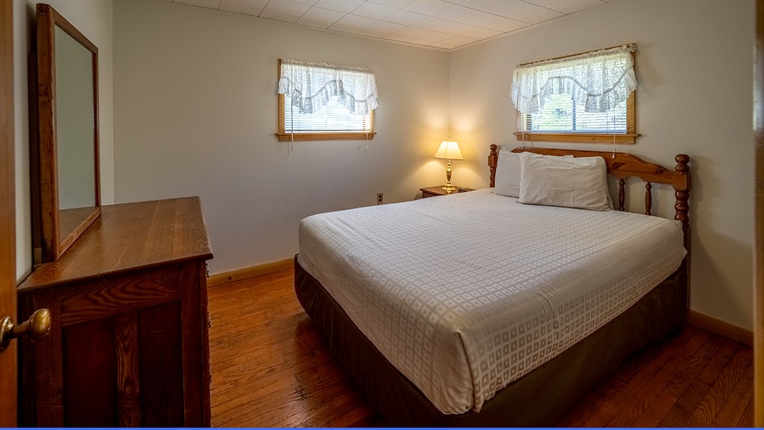 Our Green Cottage, #132, is located on Otsego Lake and features 2 bedrooms, each with 1 Queen bed. The cottage has beautiful views of the lake as it sits only 20 feet from the shoreline.