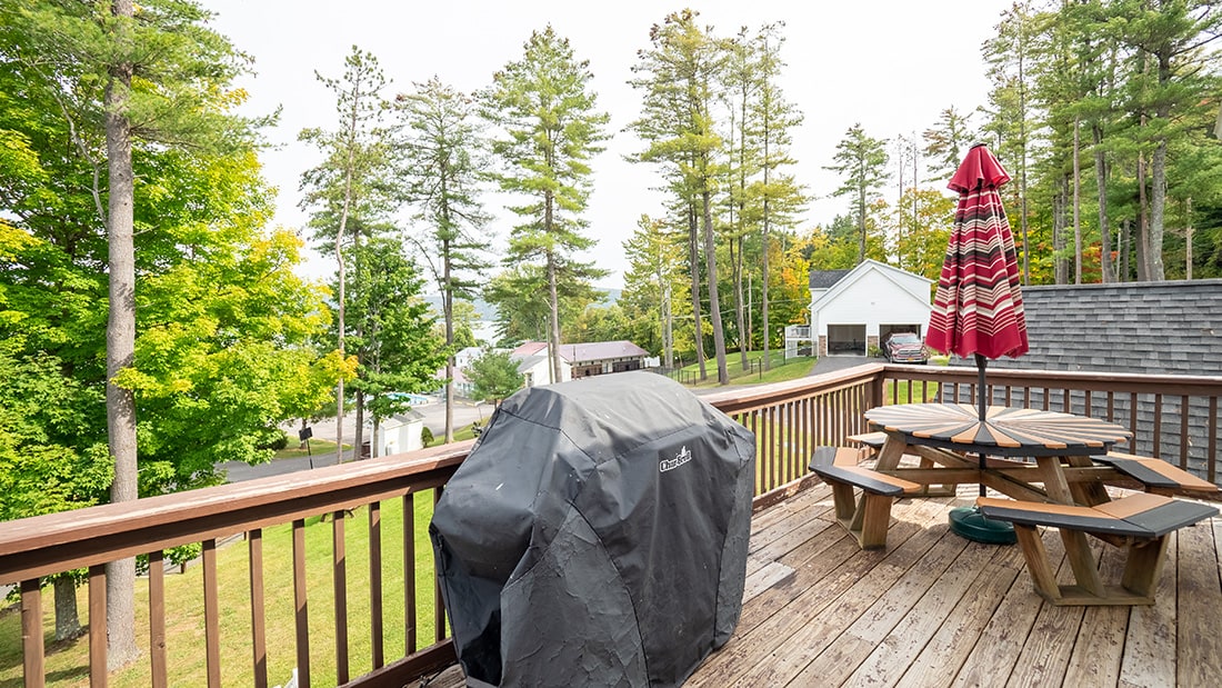 The square footage of the cottage is 1,125. The cottage features a large deck area, measuring 30 ft X 9 ft, with a BBQ Grill, patio furniture and stunning views of Otsego Lake.